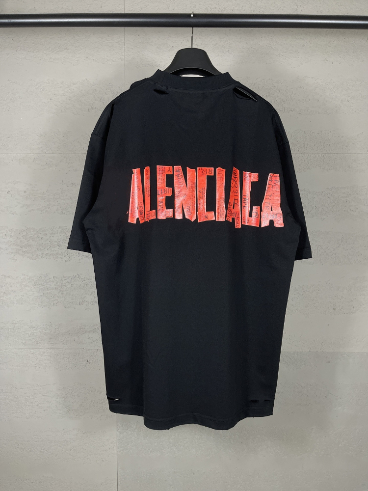 Balenciaga new collection distressed and faded loose-fitting short-sleeved T-shirt with print-5335