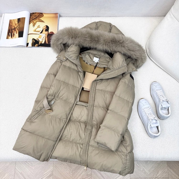 Burberry fitted, slimming, mid-length down jacket with fur collar and 90% white goose down filling-5338