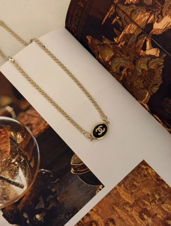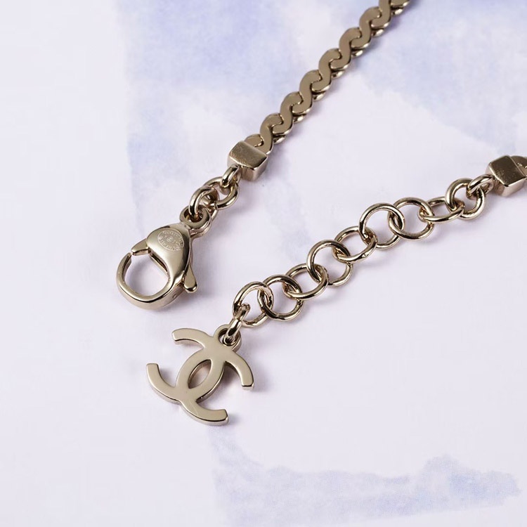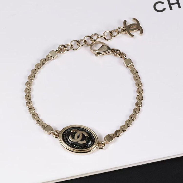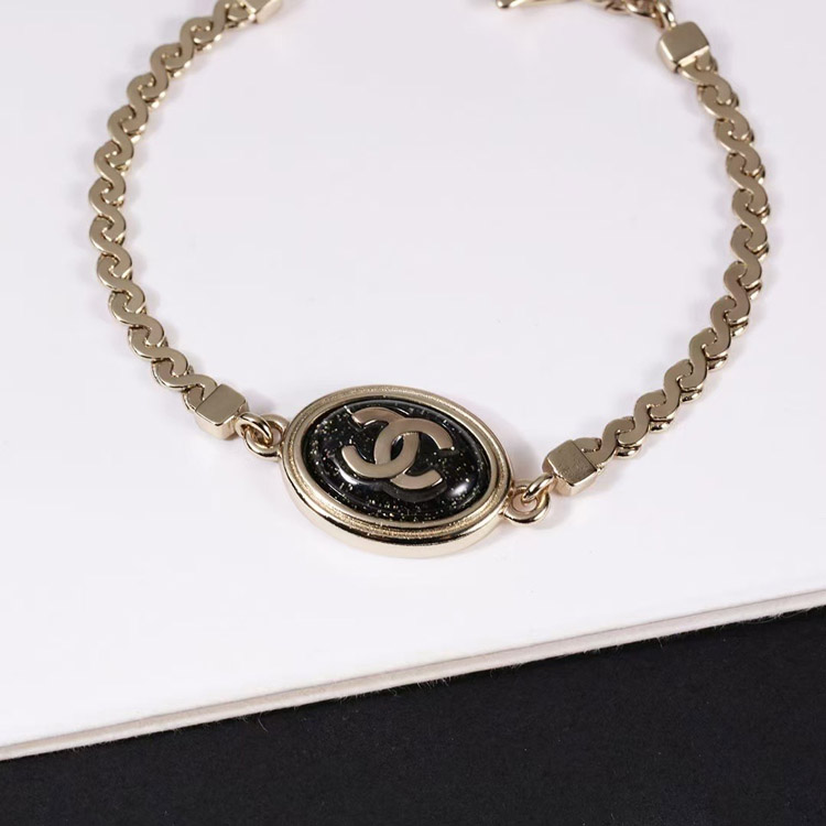 Chanel gold oval black fine flash double c letter snake bone bracelet-3740