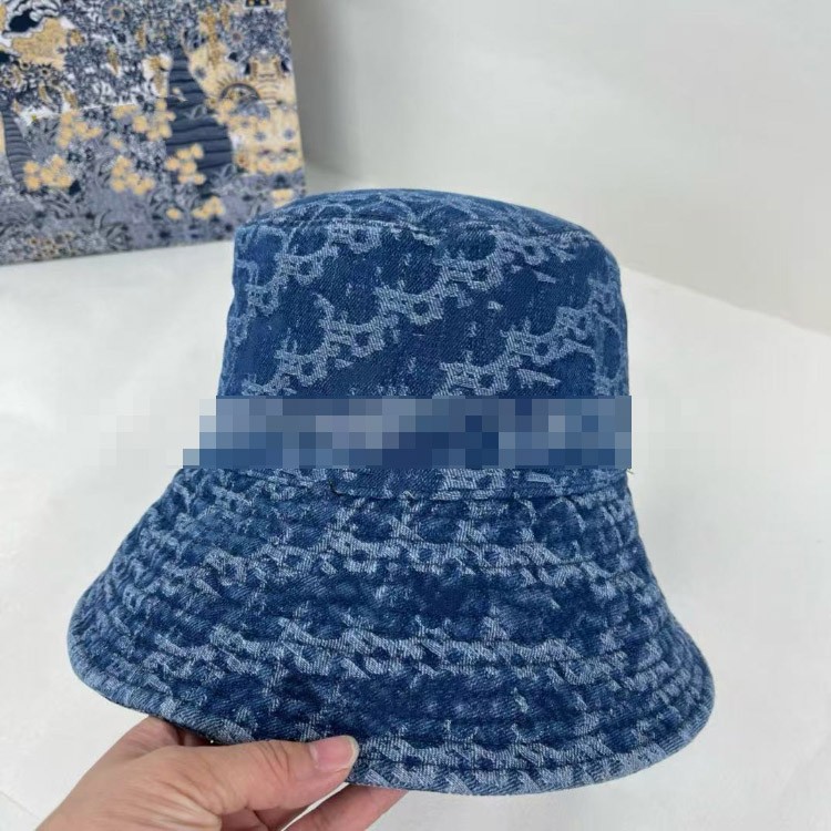 Dior new denim wide-brimmed sun protection bucket hat-5844
