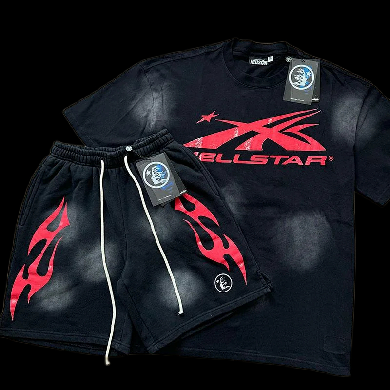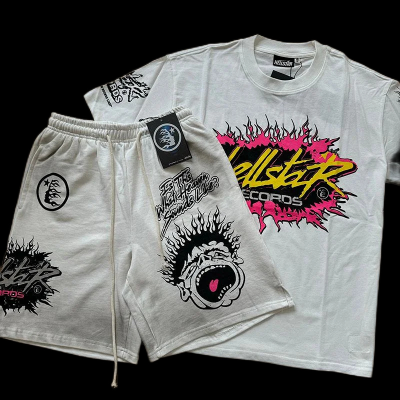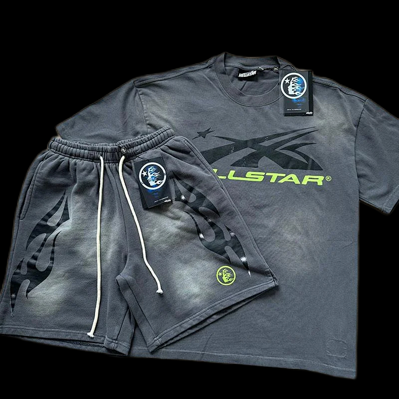 Home > Hellstar printed loose short-sleeved shirt and shorts set-5185