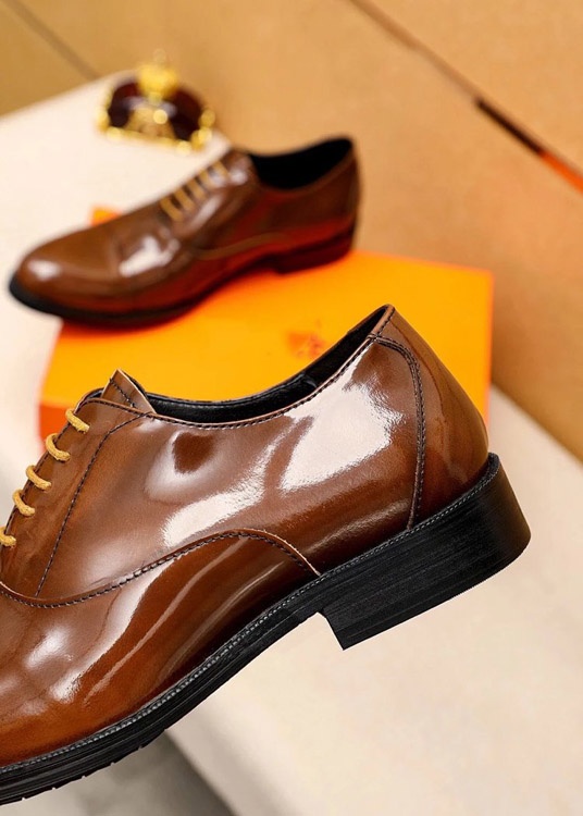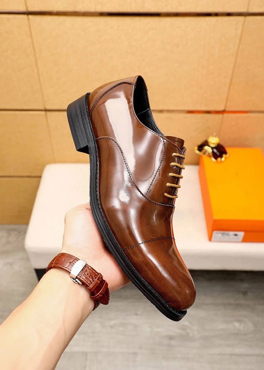 Hermès new classic calfskin lace-up business shoes-5507