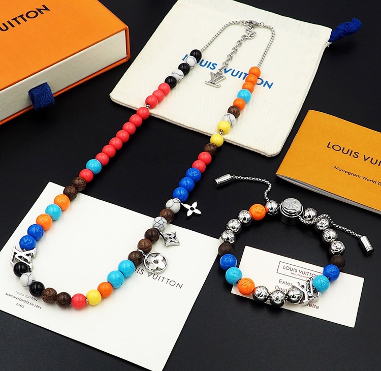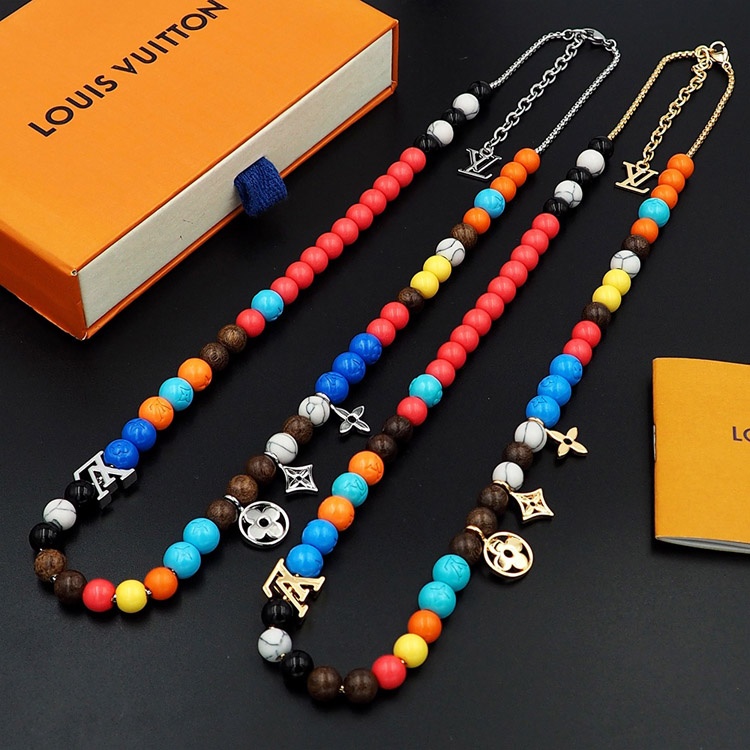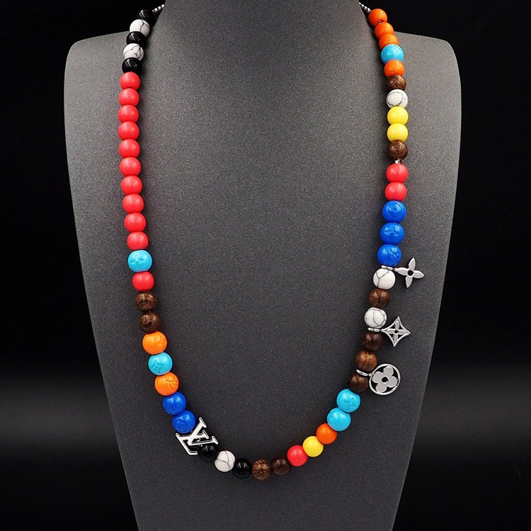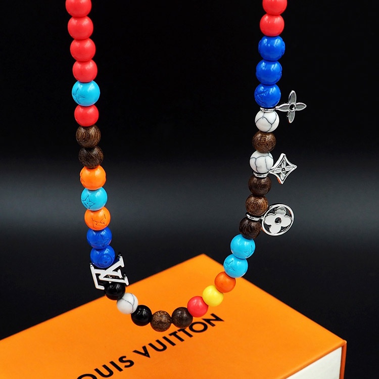 Louis Vuitton LV adjustable cord embellished wooden inscription metal beaded necklace-3950