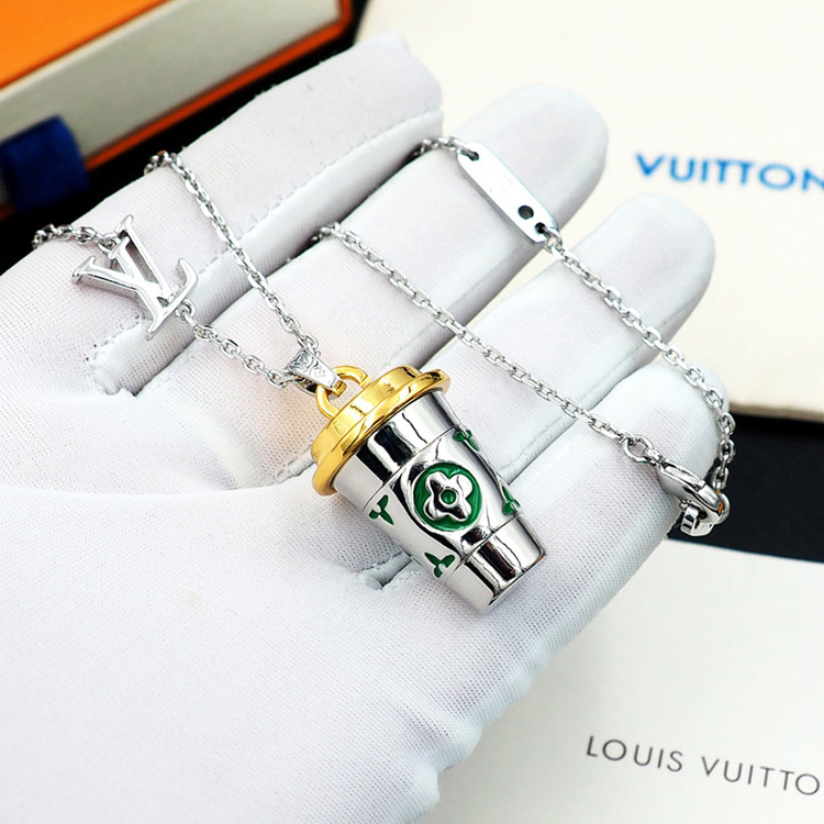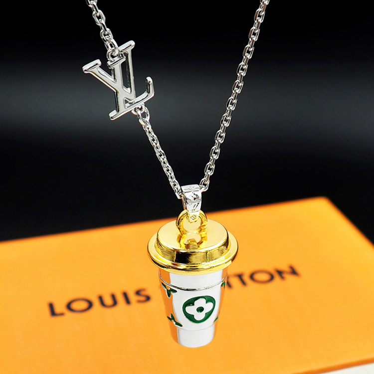 Louis Vuitton LV Letter Floral Enamel Inscription Miniature Coffee Cup Necklace-3915