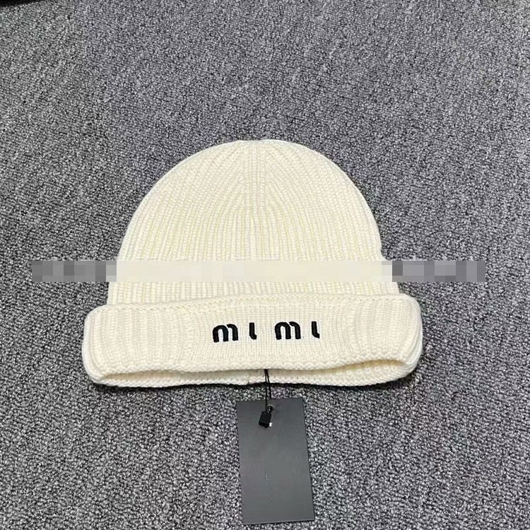 Miu Miu letter-embroidered ear-warming knitted hat-5845