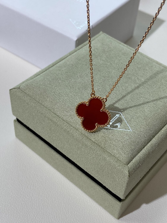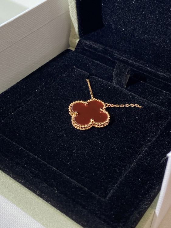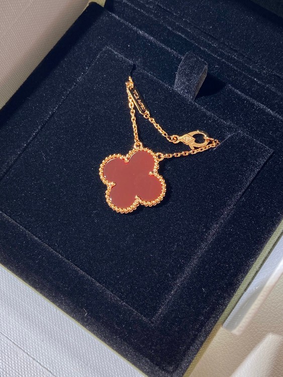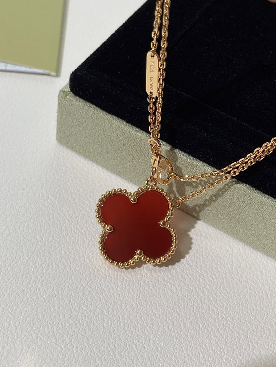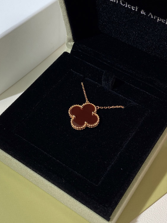 Van Cleef & Arpels four-leaf clover gold red obsidian wide necklace-3790