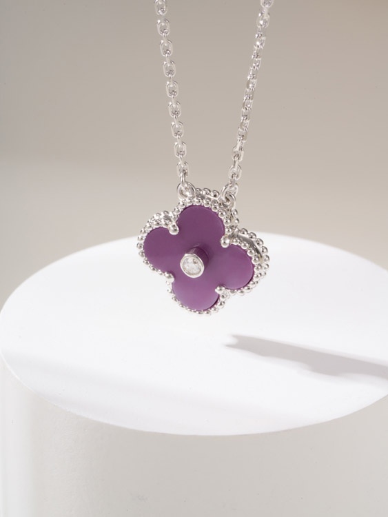 Home > Van Cleef & Arpels Violet Stone Four-Leaf Clover Single Flower Diamond Necklace-3907
