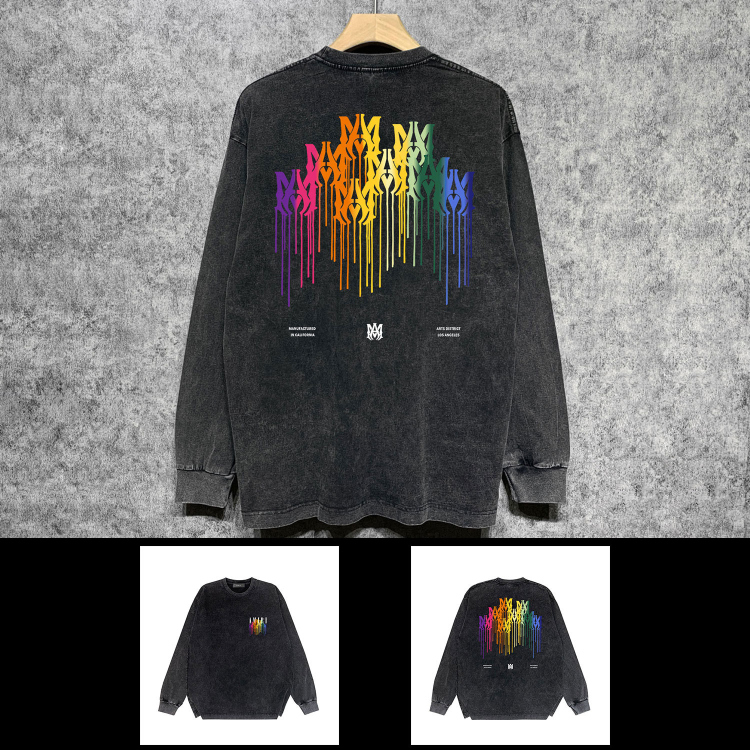 Home > AMIRI popular distressed wash printed long-sleeved T-shirt-5864