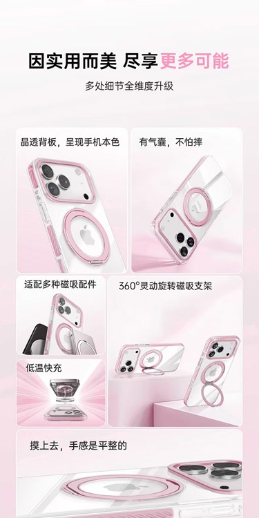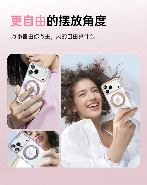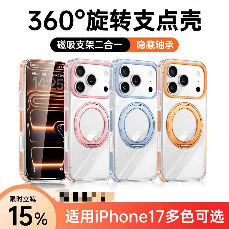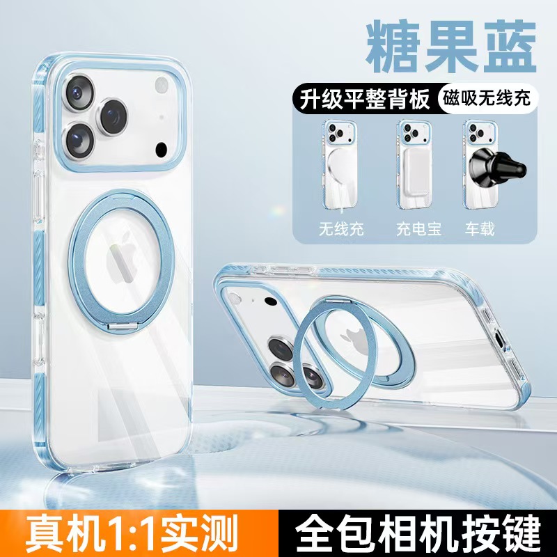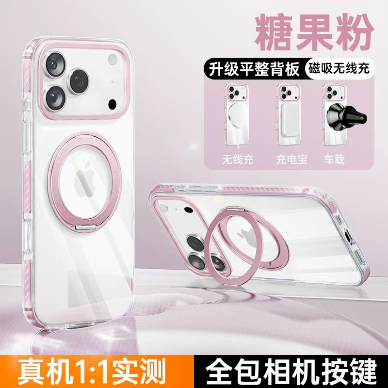 Home > Apple 17 Magnetic Transparent Rotating Stand Drop-Proof Phone Case-4625