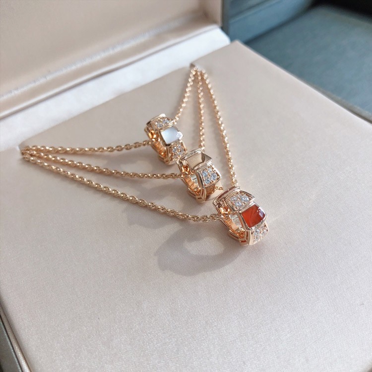 Home > Bulgari snake bone wheel white mother-of-pearl red chalcedony rose gold necklace-3765