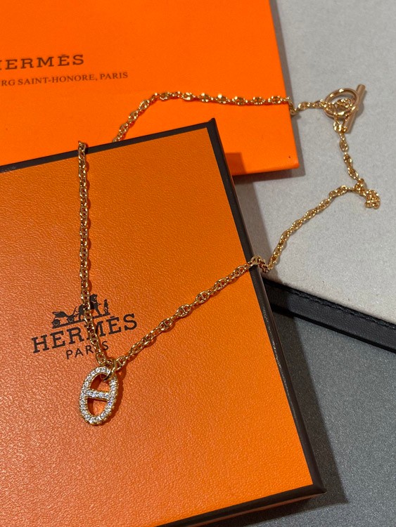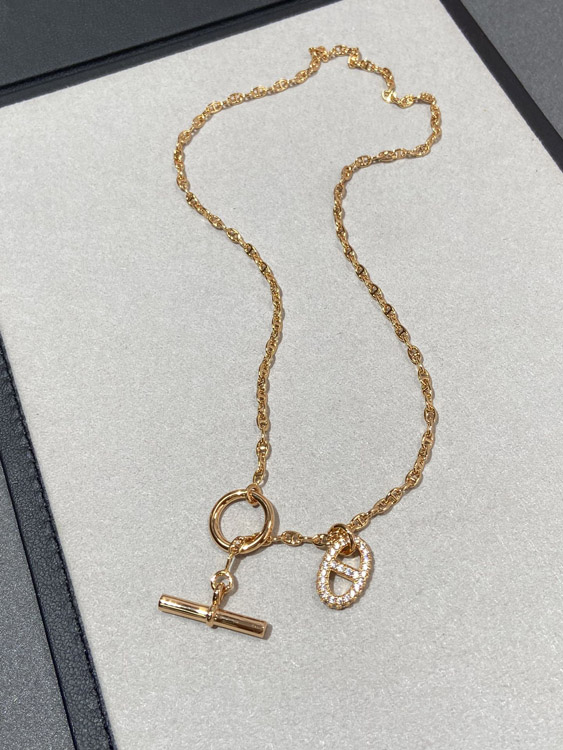 Hermes pig nose full diamond necklace-3613