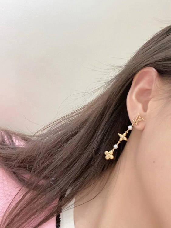 Louis Vuitton LV letter pearl four-leaf clover long earrings-3832