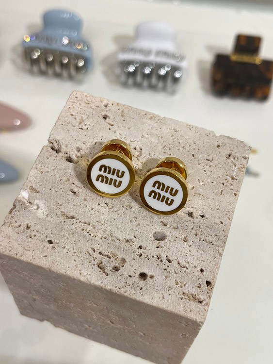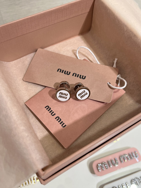 MIUMIU white enamel letter metal round button earrings-3892