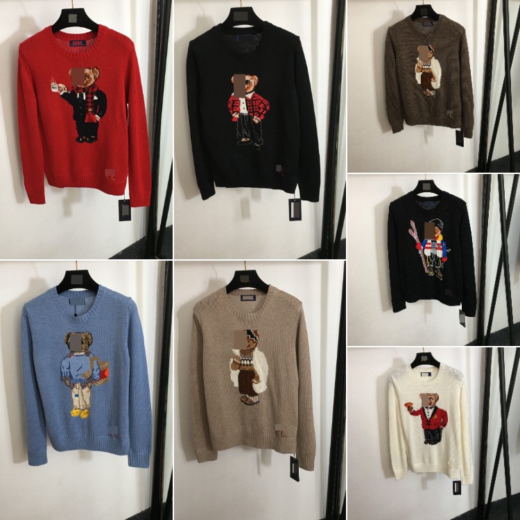 Polo Ralph Lauren new stylish teddy bear jacquard pattern pullover wool knit sweater-5410